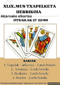 Aspaldiko ohitura da Aizarnan, Zestoan, otsailean egiten zen Morroi Feria egunaren bueltan mus txapelketa azkarra antolatzea. Aurten ere egin da txapelketa elkartean, nahiz eta feria bera aspaldi amaitu zen.