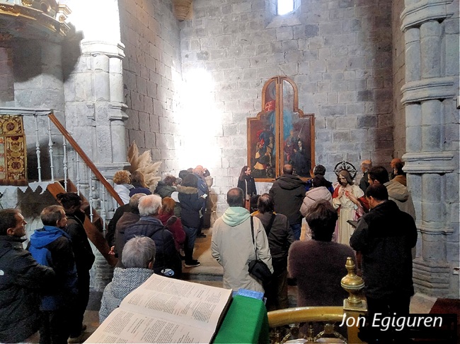 Eztabaida hasi aurretik, elizaren historia eta ondarearen balioa azpimarratu zituzten, eta harritzekoa da zenbat lagun hurbildu zen gaiaz arduratuta. Iritzi asko plazaratu ziren: eraikuntzen jabegoa herriari uztea, desakralizatzearen aukera eta abar. Proposamen honek ere ez dut uste arazoa konponduko lukeenik, eta ezin dira herriko fededunak eliza sakratu gabe utzi; oraindik bertan hartzen baitira sakramentuak (bataioak, jaunartzeak…) eta hileta elizkizunak ere maiz eskatzen dituzte familiek.