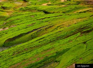 Itsasbeheran arrokatan agertzen den goroldio berdea. Margotuta dagoela dirudi.