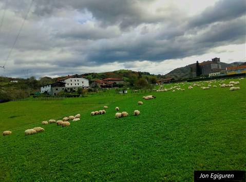 Jaitsi dira aurten ere negua iristerako goi mendietatik artaldeak. Aizarna bailarako zelaiei begiratu eta oso berde ikusten dira, nik uste zelai egoki eta belartsuak aurkitu dituztela ardiak. |